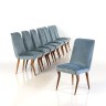 Melchiorre Bega (1898-1976) Suite de 8 chaises Noyer, laiton et textile Date de création : 1949 H 91× L 49 × P 57 cm Provenance : Casa Pietro Caliceti Un certifiat des Archives Bega sera remis à l'acquéreur