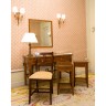 Writing table, mirror, two side tables, a chair and a lamp