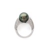MIKIMOTO Ring in 18k (750‰) white gold paved with round-cut diamonds adorned with a gray Tahiti cultured pearl