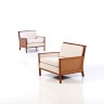 Milo Baughman (1923-2003) Paire de fauteuils Noyer, cannage et tissu Edition Arch Gordon Date de création : vers 1960 H 69 × L72,5 × P 70 × Ha 42,5 cm