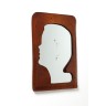 Leather mirror decorated with cut-out faces.