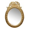 an oval mirror in gilded wood, the pediment decorated with knotted ribbons. Eighteenth century H 98 x W 46 cm