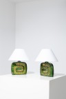 Pair of 'Ouroboros' lamps Glazed ceramic with gold, pâte de glass and fabric Model created in the 1970s Foot: H 29 × L 29 × W 8 cm
