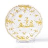 Deux assiettes à bord contourné à décor en camaïeu vert de figures grotesques et animaux fantastiques sur trois terrasses fleuries.
