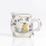 Moustiers Moutardier en forme de baril à décor en camaïeu vert et orangé de grotesques sur terrasse. XVIIIe siècle H.7,4 cm (Le couvercle absent)