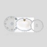 MoustiersPlat ovale à bord contourné à décor polychrome sur l’aile d’armoiries sous une couronne de comte, rinceaux en camaïeu bleu ...