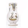 Moustiers Pot à eau couvert à décor polychrome d’un chien et oiseau sur terrasse. XVIIIe siècle H.24 cm (Fêlure)