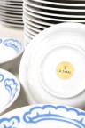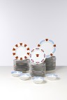 Porcelain tableware set with tiger pattern Each element bears the designer and the Sarri studio's stamps Model created in 1991-1993 4 bowls: O 14 cm 20 dessert plates: O 22 cm 20 flat plates: O 26 cm 18 soup plates: O 22,5 cm