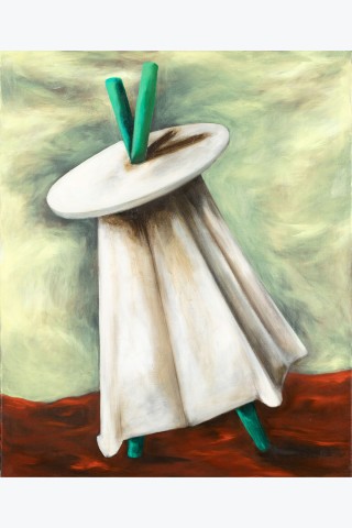 The stool, wood, lightbulb