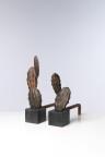 Pair of andirons - ‘Cactus’ model Debossed signature, ‘W. Niel’ Patinated and gilded bronze and wrought iron Model created in the 1960s H 47,5 × L 13 × W 42,5 cm H 35,5 × L 13,5 × W 42,5 cm