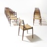 Niels Otto Moller (1920-1981) Modèle 78 Série de dix huit chaises Palissandre et cannage Edition J. L. Mollers Mobelfabrik Date de création : circa 1950 H 80 × L 48 × P 43 cm Bibliographie : - Noritsugu Oda, « Danish Furniture », Kyoto, 1996 p. 160 - Revue « Design from Scandinavia » n°11 - The furniture fair Denmark 1963, The Danish Museum of Decorative Art, Library Design Museum Danmark, modèle reproduit sous le n° RP00197