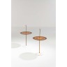 Nino Zoncada (1898-1988) Model AZ 1001 Pair of side tables Brass, marble, walnut veneer, pear tree wood, and satine wood Edited by Altamira Model created in 1952 H 80 × Ø 42 cm