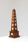 Walnut obelisk with plaster camee casts, with antique profile decor (small dent on the top)