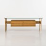Console Wood, glass and brass Creation date: circa 1950 H 70.5 × L 192.5 × W 45.5 cm