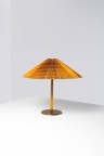 Lamp, model n°9206 Brass, wood and wood slats Edited by Taito Oy Stamped with 'TAITO' beneath the foot Model created circa 1950 H 49 × Ø 52 cm