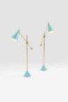 Pair of floor lamps model K10-11 Brass and lacquered metal Edited by Idman Stamped with 'Idman' Model created circa 1950 H 150 × Ø (lampshade) 17 cm Bibliography: Idman commercial catalogue n°133, 1953, model illustrated p. 78