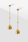 Pair of ceiling lamps, model n°51160 Brass and glass Edited by Idman Stamped with 'Idman' Model created circa 1950 H 120 × Ø 20 cm Bibliography: Idman commercial catalogue n°136, 1954, model illustrated p. 76