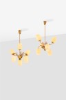 Pair of ceiling lamps, model n°K1-10 Brass and glass Edited by Idman Model created circa 1950 H 100 × Ø 56 cm