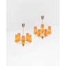 Paavo Tynell (1890-1973) Model n°9015 Pair of ceiling lamps Brass, glass and wood Edited by Taito Oy Marked '9015 OYTAITOAB' Model created circa 1945 H 82 × Ø 62 cm