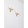 Paavo Tynell (1890-1973) Model n°9445 Pair of sconces Brass and fabric Edited by Taito Oy Model created circa 1950 H 38 × W 32 × L 14,5 cm Bibliography: Idman sales catalogue n°136, 1954, model illustrated p. 62