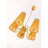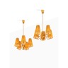 Paavo Tynell (1890-1973) Pair of suspensions Brass, glass and wood slats Edited by Taito Oy Stamped with 'OYTAITOAB 9082' Model created circa 1950 H 100ר 58cm