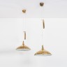Paavo Tynell (1890-1973) Modèle 10111 Paire de suspensions à contrepoids Laiton doré et plomb Edition Oy Taito Date de création : années 1965 Ø 45 cm Bibliographie : Finland House Lighting: harmony in lighting for harmony in living, original designs by Paavo Tynell, New York,exemplaire similaire reproduit p.17