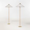 Paavo Tynell (1890-1973) Modèle 9602 Paire de lampadaires Laiton doré, métal et rotin Editio Oy Taito Date de création : circa 1950 Estampille Taito Idman H 150 × Ø 24 cm