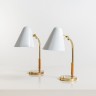 Paavo Tynell (1890-1973) 5233 Paire de lampes de table Laiton, métal laqué blanc et rotin Edition Taito Oy Date de création : circa 1960 H 42 × P 27 cm