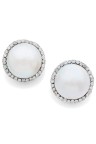 Pair of ear clips in white gold and in 18k yellow gold (750‰) adorned with mabé pearls surrounded with round-cut diamonds
