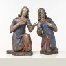 Paire d'anges agenouillés en noyer polychromé XVIIe siècle (quelques manques dont les ailes) H 61 × L 34 × P 22 cm