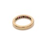 Pair of wedding rings in 18k yellow gold (750‰), one adorned with diamonds and rubies, the other adorned with emeralds and diamonds EU