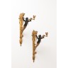 Pair of gilt bronze and black lacquered two-light sconces held by putti entwined with snakes Empire style H 45 X W 21 cm