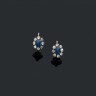 Paire de boucles d'oreilles dormeuses en or jaune 14k (585‰) et argent ornées de cabochons de saphirs dans un entourage de diamants taille ancienne. (Systèmes en métal).