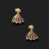 Paire de boucles d'oreilles "éventail" en or jaune 18k, 750‰ serties de diamants ronds, de rubis, d'émeraudes et de saphirs calibrés...