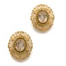 Pair of yellow gold filigree earrings with foliage decoration adorned with oval citrines in the centre Hallmarks