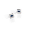 Paire de boutons de manchettes de forme carrée en or gris 750‰ sertis au centre de saphirs calibrés. Poids brut : 20,8 g
