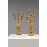 Pair of candelabras gilt chased bronze with three flowered arms of lights supported by antique draped women.