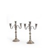 Paire de chandeliers en métal argenté à quatre lumières, fût à décor de coquilles et base à filets chantournée. H 38 cm