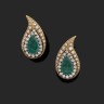 Paire de clips d'oreilles à motifs cachemire en or jaune 750‰ chacun orné d'une importante émeraude taillée en poire dans un double entourage de brillants.