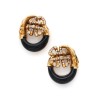 Pair of modernist oval ear clips in 18k (750‰) yellow gold, onyx and round-cut diamonds, close-set French production from the 1970s-80s