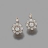 Paire de dormeuses anciennes en or 18K (750‰) de deux tons agrémentées de motifs marguerite sertis de diamants taille ancienne pesan...