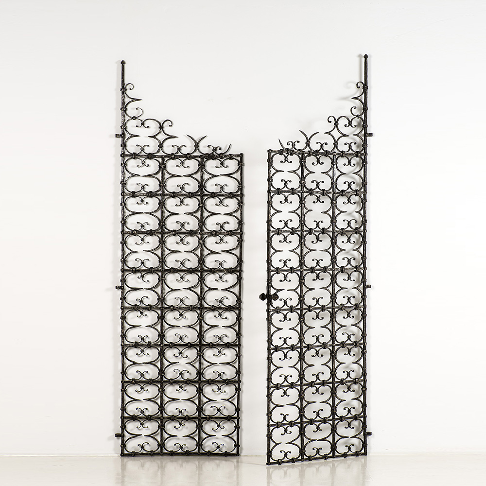 Paire de grilles en fer forgé à décor de volutes Style du XVIIe siècle H 230 x L 67 cm – L totale 138 cm