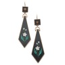 Pair of long ear pendants in 18k yellow gold (750‰) adorned with micro-mosaics with a flower pattern, on onyx Production from the 1840s