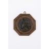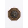 Pair of patinated terracotta medallions representing Molière and Racine, in octagonal patinated and gilded wood frames decorated with foliage frieze. Seventeenth century style. H 58 x W 56 cm