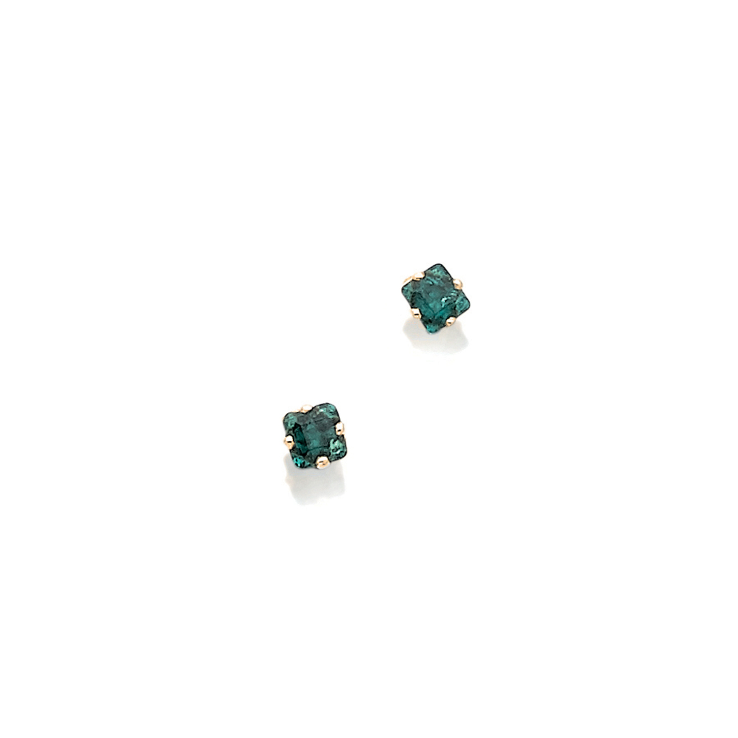 Pair of stud earrings in 18K yellow gold (750‰) each adorned with a claw-set rectangular emerald with