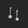 Paire de pendants d'oreilles en or jaune 585‰ et platine ornés d'une chute de diamants taille ancienne sertis clos retenant deux perles fines.