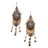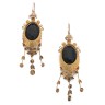 A pair of yellow gold earrings with pendants each set with an onyx plate delicately painted with a bouquet of flowers Austrian or Venet