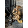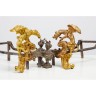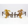 Pair of small ormolu firedogs with dragons, resting on a scrolled foliage base; (gilding redone at a later date; important missing gild
