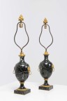 Pair of lamp feet in sea-green marble, baluster shape, with gilded bronze mount with lion snouts (small dents and scratches)