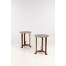 Pair of circular mahogany and gilt bronze tables, the Turquin blue marble top resting on uprights terminating in claws, with a crowned PB mark. Empire style, XIX century. H 71.5 x D 57 cm